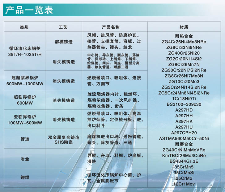 產(chǎn)品一覽表